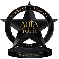 I have been a finalist in the Australian Bridal Industry Academy (ABIA) Awards every year since 2008, the year I joined the academy. Voting for this award is by couples whose marriage I have performed the 12 months prior. I was awarded Queensland Marriage Celebrant of the Year in 2014/15 by the Australian Bridal Industry Academy (ABIA).